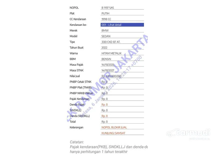 - Plat: B 1197 SAS