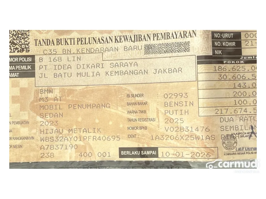 BMW M3 2024 NIK 2023