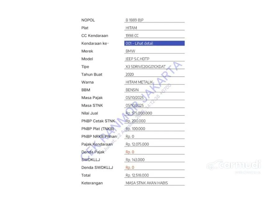 Plat : B 1889 BJP ( Ganjil Jakbar )