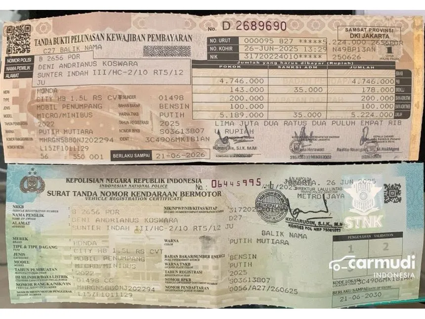 * Surat dijamin asli dan lengkap beserta faktur stnk, BPKB, dan lain lain.