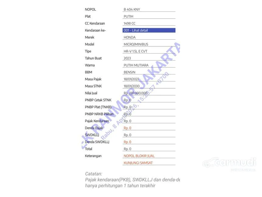 - Plat: B 404 KNY