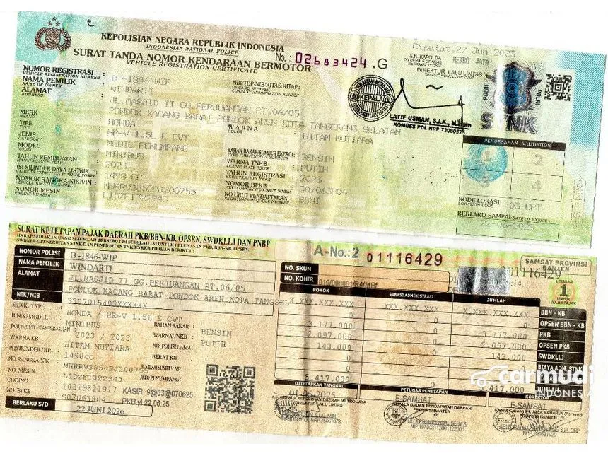 * Buku Service, Buku Manual, Kunci Cadangan Tersedia