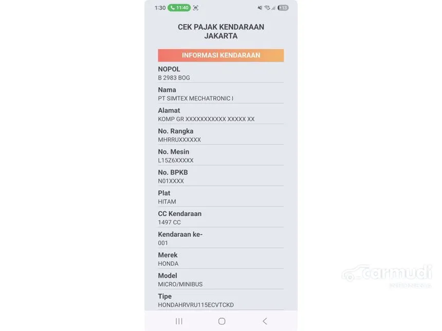 - Plat: B 2983 BOG