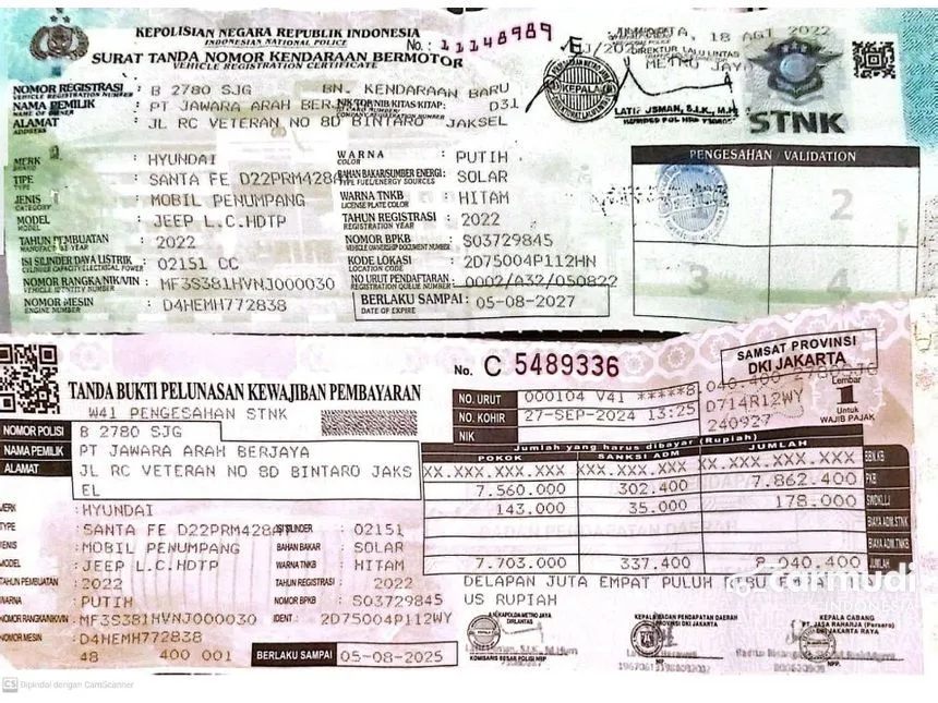 - Dokumen dan surat surat Asli dan lengkap