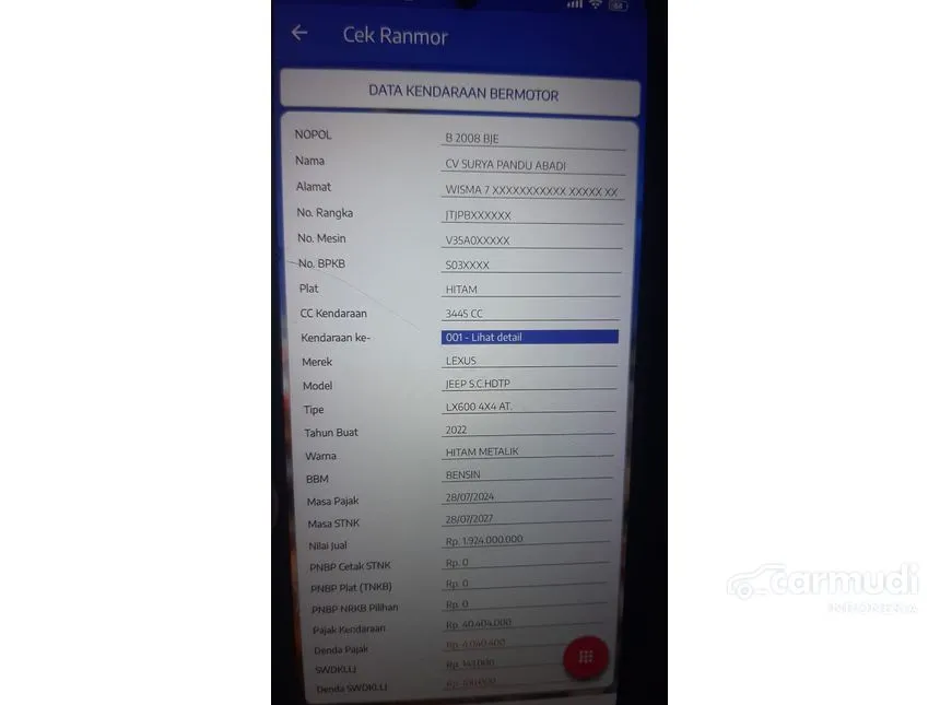 Info detail mobil / cek unit bisa hubungi langsung