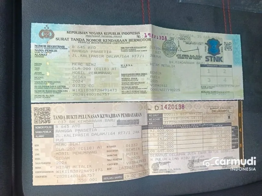 - Warranty ATPM Mercedes Benz 5 Stars ( 3 Thn Full Spareparts s/d Agst 2027 + 5 Thn Free Service s/d Agst 2029 )