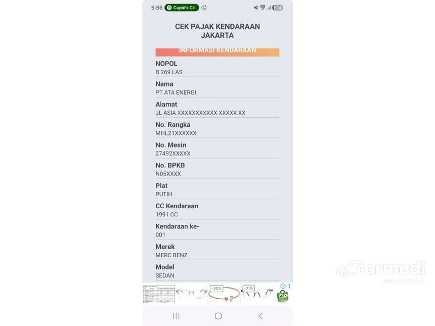 - Plat: B 269 LAS