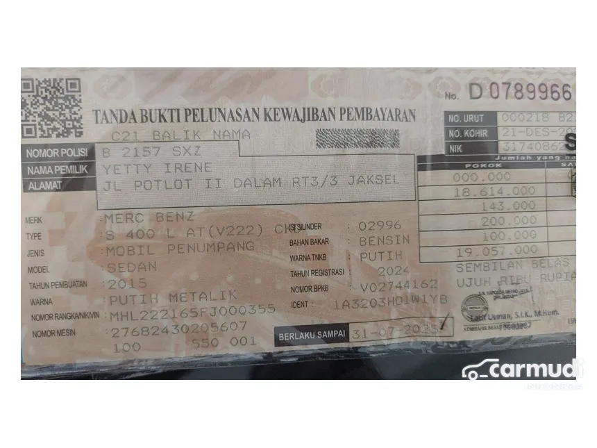 AMG Package, Rear Seat Entertainment, 3TV, Kursi Pijat, Panoramic Roof, Ambient Lights, Airsus, PBD, Cruise Control, Reverse Camera, Burmester Surround Sound, Navigation, Electric Seat. ( Stnk Panjang)