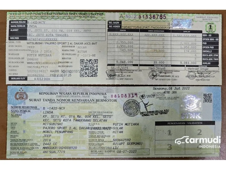 - STNK A/N Perorangan