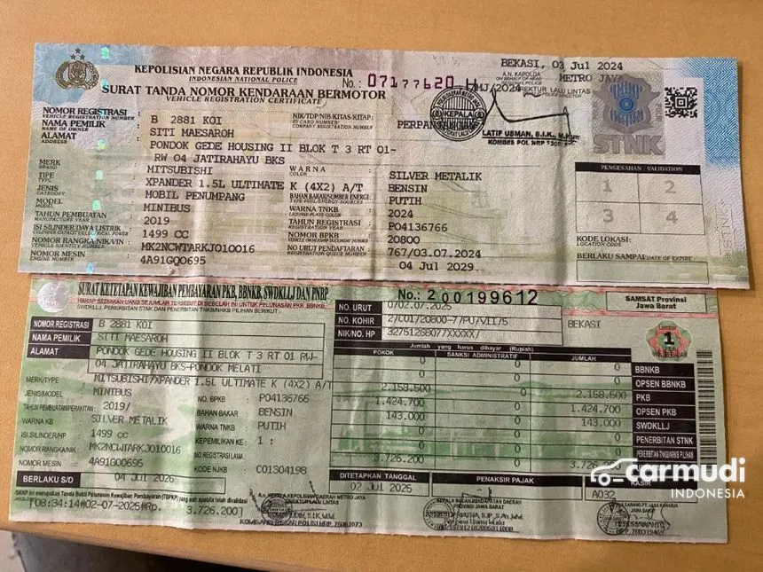 * Surat-surat lengkap & aman (STNK + BPKB asli)