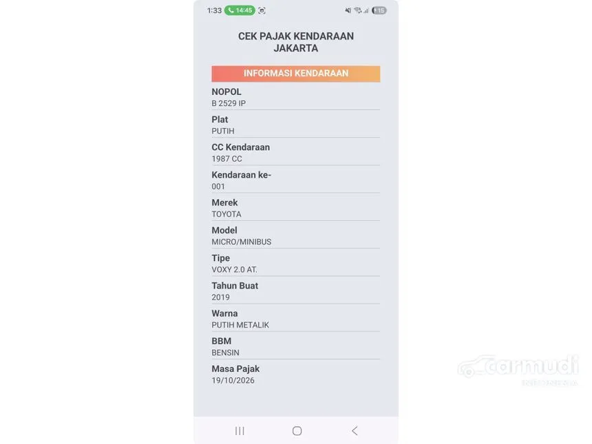 - Plat: B 2529 IP