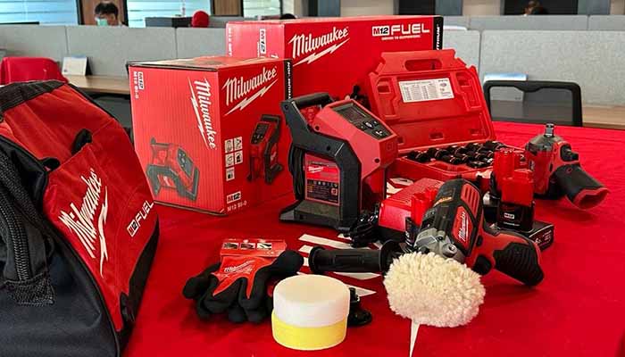 Produk tersebut terdiri dari M12 Fuel 1/2 Stubby Impact Wrench, M12 BPS-0 M12 Compact Polisher Bare Unit, M12 B1-0 M12 Sub Compact Inflator, 3 baterai B6 M12 Battery Pack 6.0 Ah, dan satu unit C12C M12 Charger.